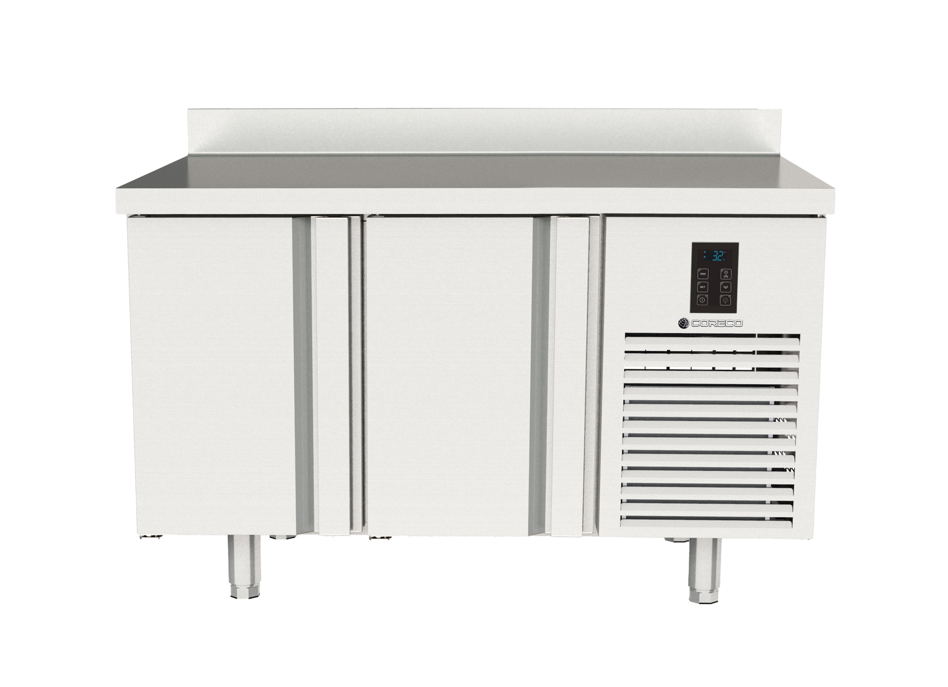 Kølebordet har en praktisk bagkant og leveres med to selvlukkende og vendbare døre, som giver fleksibilitet i indretningen. Indvendigt er der en justerbar trådhylde i hvert skab, så du nemt kan tilpasse opbevaringspladsen efter dine behov. Temperaturintervallet ligger mellem -2 og +8 °C, og det elektroniske styresystem sikrer stabil køling døgnet rundt.