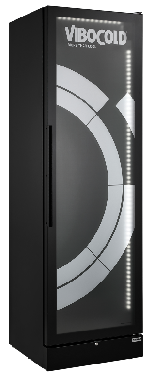 VD 390 er et high-end displaykøleskab med en ekstrastor volumen på 425 liter. Køleren har indbygget lås og sort aluminiumsramme og byder på ventileret køl med analog termostat.