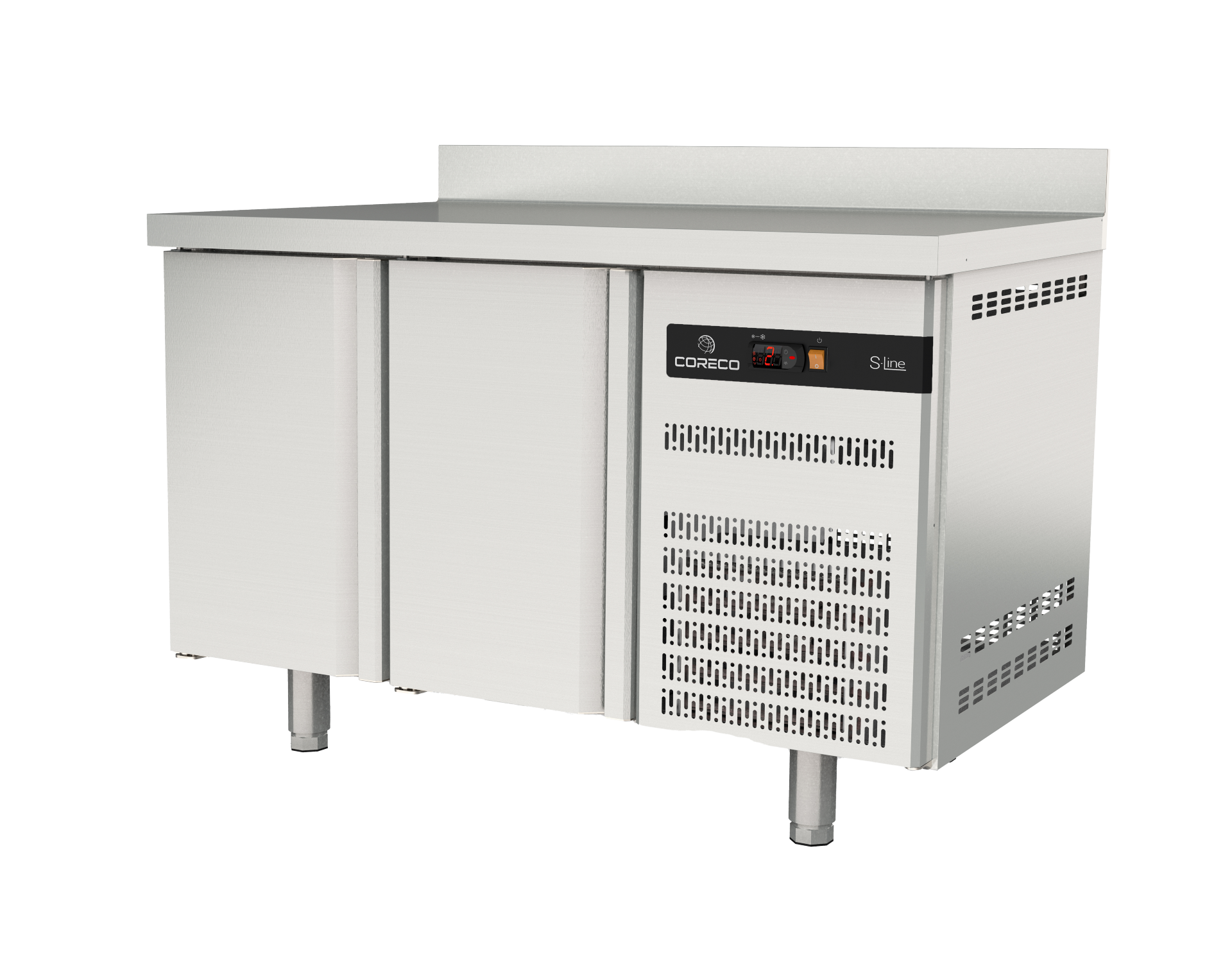 TGC-135-S frysebordet er fremstillet i fødevaregodkendt rustfrit stål både indvendigt og udvendigt, hvilket sikrer let rengøring og maksimal hygiejne. Den høje bagkant og justerbare fødder sikrer desuden ergonomisk arbejdsstilling og stabilitet.