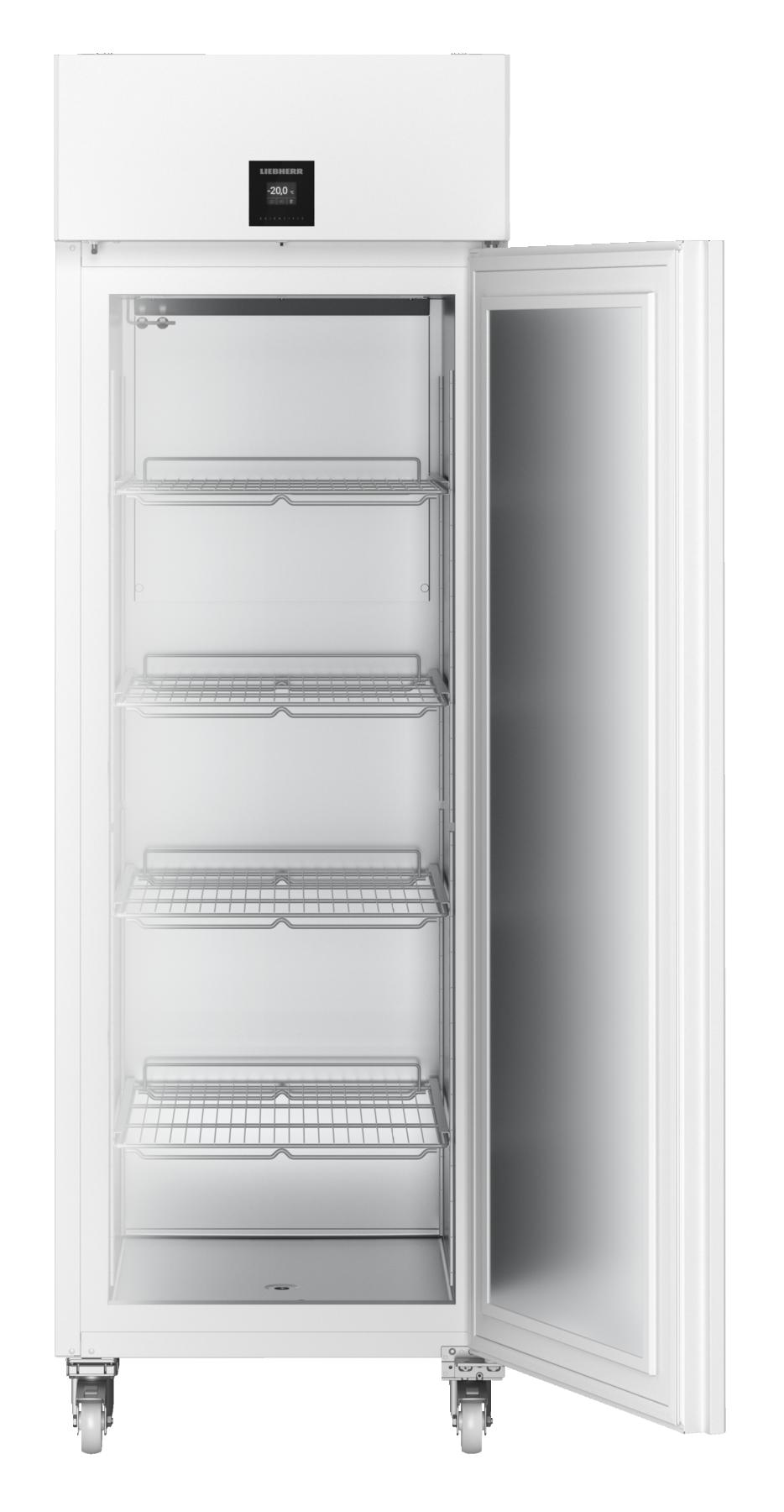 Hvid laboratoriefryser med 4 trådhylder