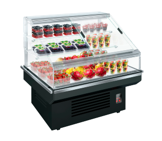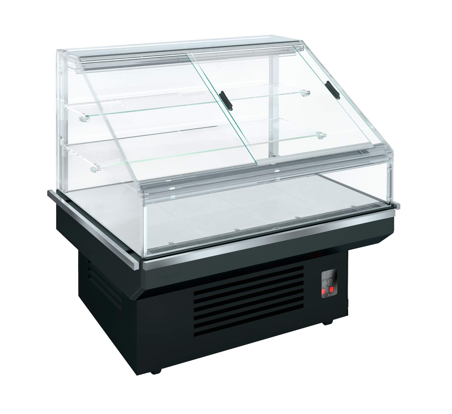 Det robuste kabinet i sort er udstyret med rustfrie bumper lister på front og sider samt låsbare hjul, så enheden nemt kan flyttes og fastlåses efter behov. Med dimensioner på 1280 x 1140 x 1340 mm passer køleren perfekt ind i mange butiksmiljøer, både som enkeltstående løsning eller "ryg mod ryg" for dobbelt display.