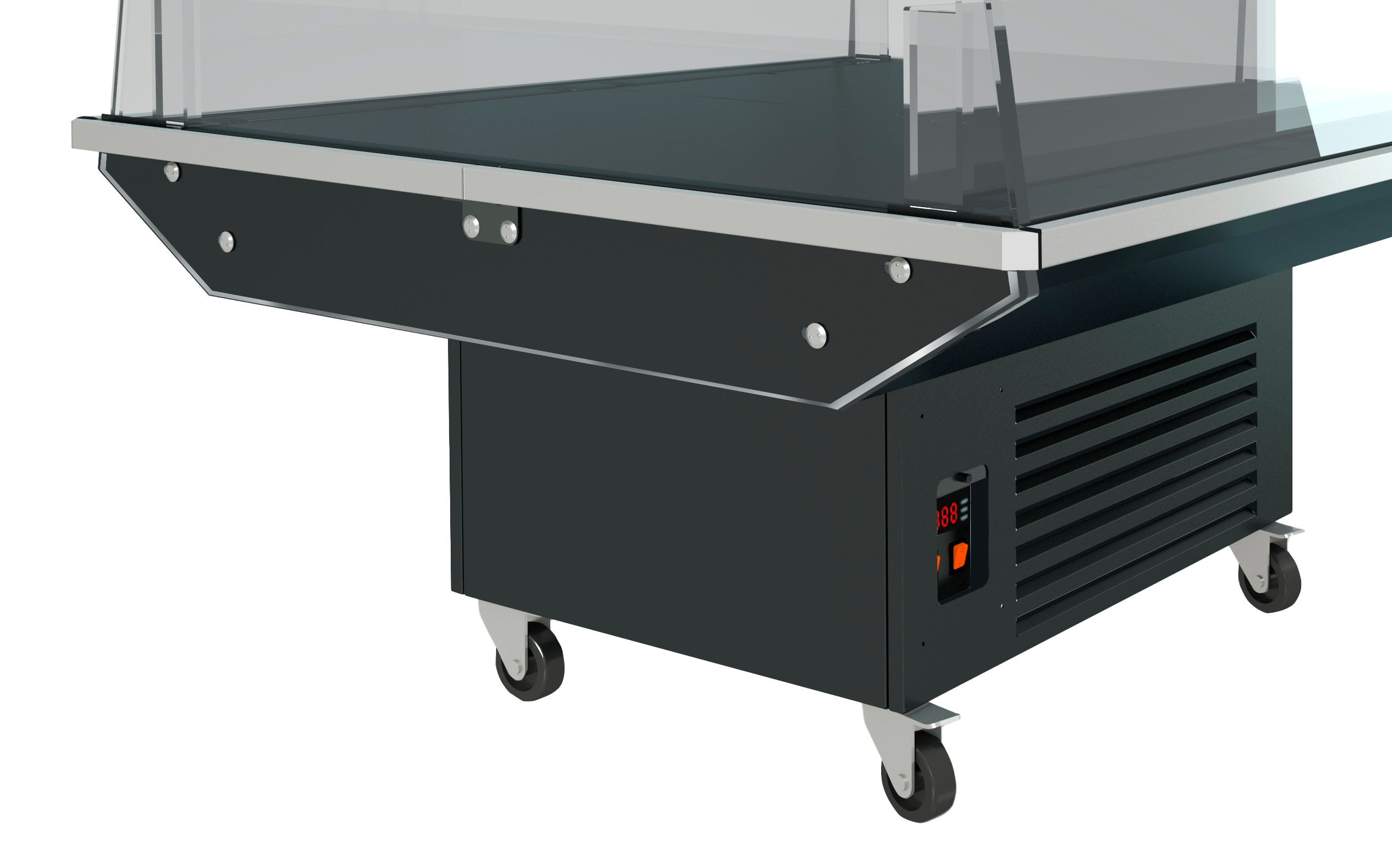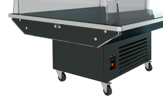 Med store lås-bare hjul er ODESSA VOIC 125 særdeles mobil og fleksibel. Hjulene gør det nemt at placere køleren optimalt, og let at bruge som impuls- og kampagnekøler. Køleren kan nemt skråtstilles til 3, 8 eller 11 grader, hvilket giver mulighed for optimal præsentation af forskellige typer varer.
