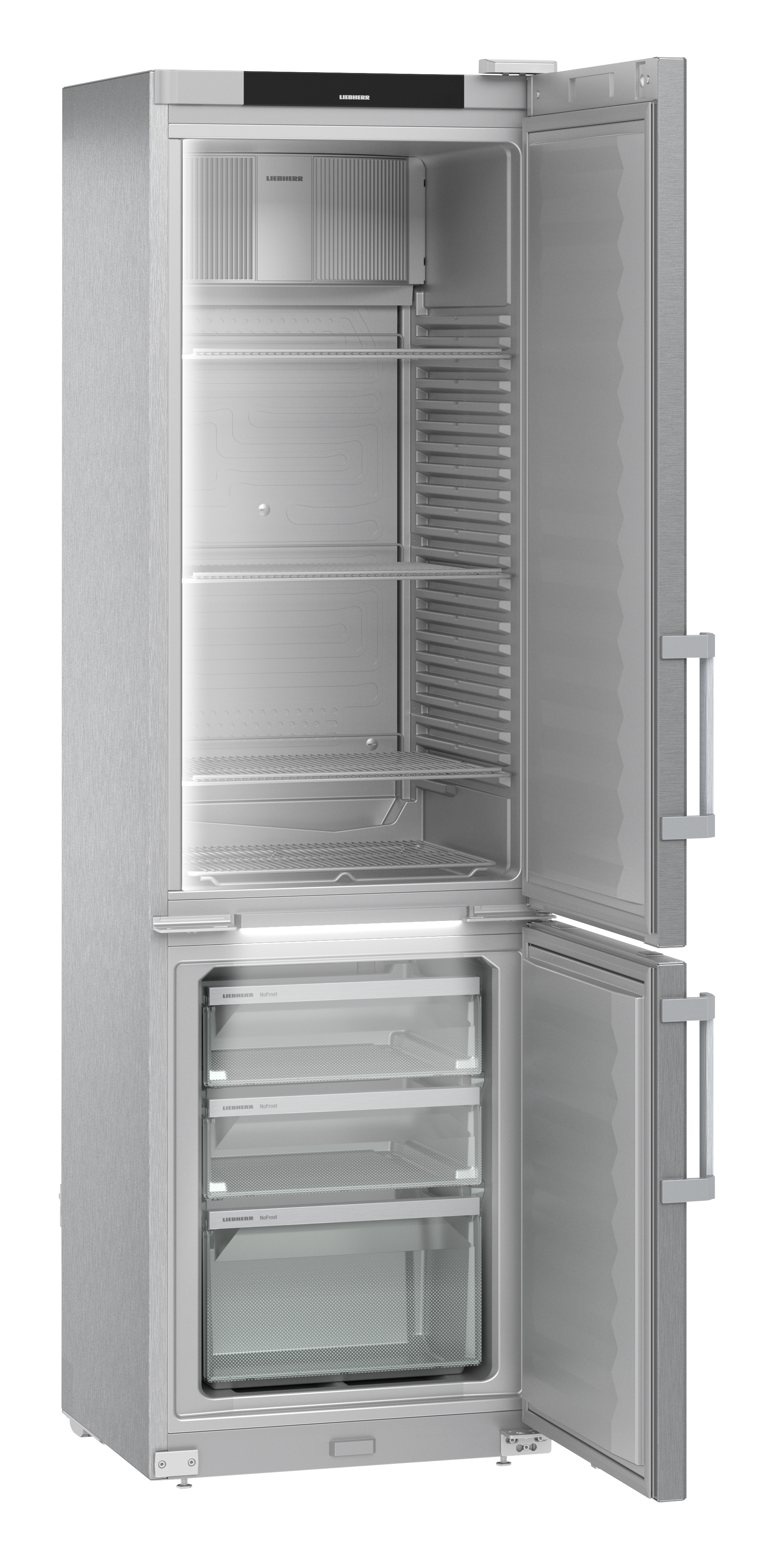 Det rustfri stålkabinet med sølvfarvet polystyrol-interiør sikrer holdbarhed og nem vedligeholdelse. Kølesektionen opretholder en præcis temperatur mellem +1°C og +15°C, mens frysesektionen effektivt køler ned til mellem -9°C og -26°C. Den automatiske afrimningsfunktion minimerer vedligeholdelsesbehovet og sikrer stabil drift.