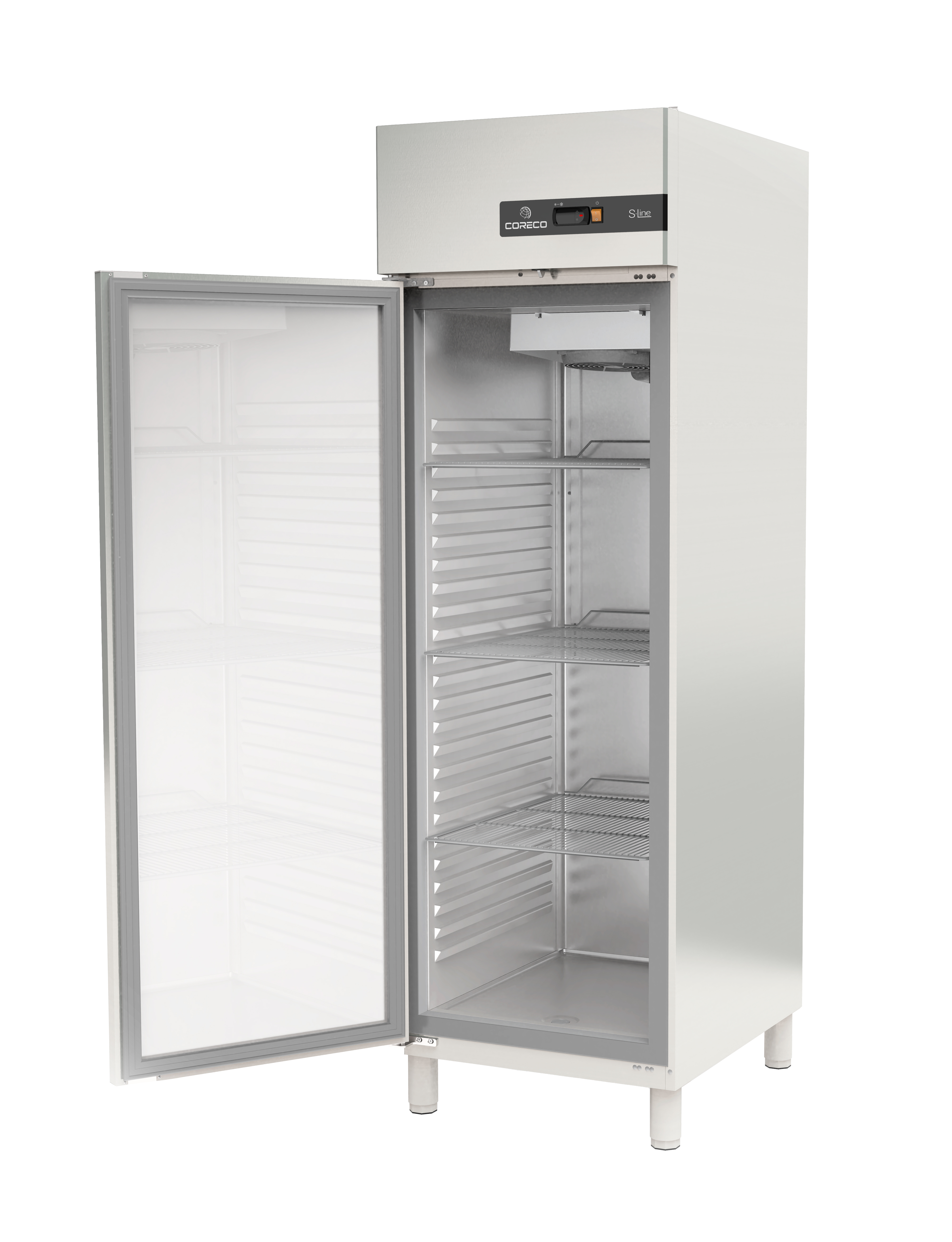 Den ventilerede køleløsning med tvungen luftcirkulation bidrager til ensartet temperatur i hele skabet. Når døren åbnes, stopper ventilatoren, hvilket hjælper med at begrænse unødigt kuldetab. Den digitale temperaturstyring understøtter en stabil drift med optimeret afrimning og giver ekstra tryghed via alarmer, bl.a. ved åben dør. Afrimningsvand håndteres via automatisk fordampning, så hverdagen bliver mere driftssikker og mindre tidskrævende.