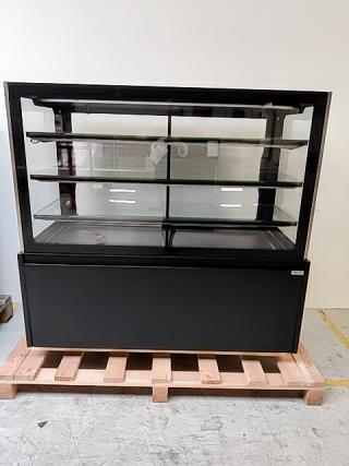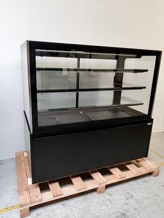 Den lige glasfront giver et rent og moderne udtryk og skaber et tydeligt overblik for kunderne. De justerbare glashylder gør det nemt at tilpasse opstillingen, uanset om du udstiller kager, brød, emballerede varer eller andre ikke-kølekrævende produkter.