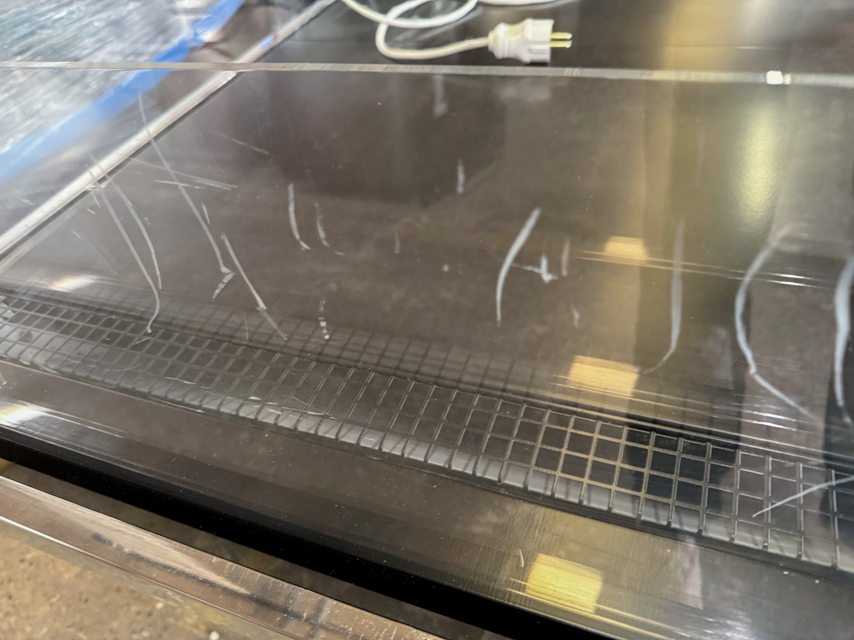 Impulskøleren har ridser på luftlederne samt mærker i akrylgavlene. Fungerer upåklageligt.